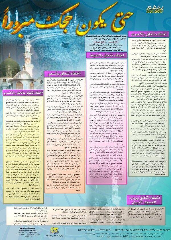 بوستر يحتوي على بعض الأخطاء التي يقع فيها بعض الحجاج في: الإحرام، الطواف، السعي، الحلق والتقصير؛ التي ينبغي الابتعاد عنها؛ حتى يكون الحج مبرورًا.