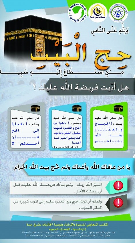 بوستر اشتمل على نصيحة لمن أغناه الله - عز وجل - ولم يحج بيته الحرام.