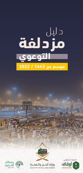 دليل مقدَّم من وزارة الحج والعمرة على شكل بتنسيق PDF، بلغات متعددة، يُبيَّن فيه تعريف موقع مزدلفة، وماذا يجب على الحاج فعله في مزدلفة، بالإضافة إلى نصائح وإرشادات تهمُّ الحاج والزائر.